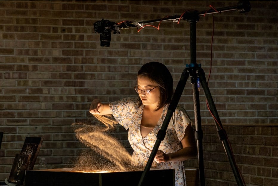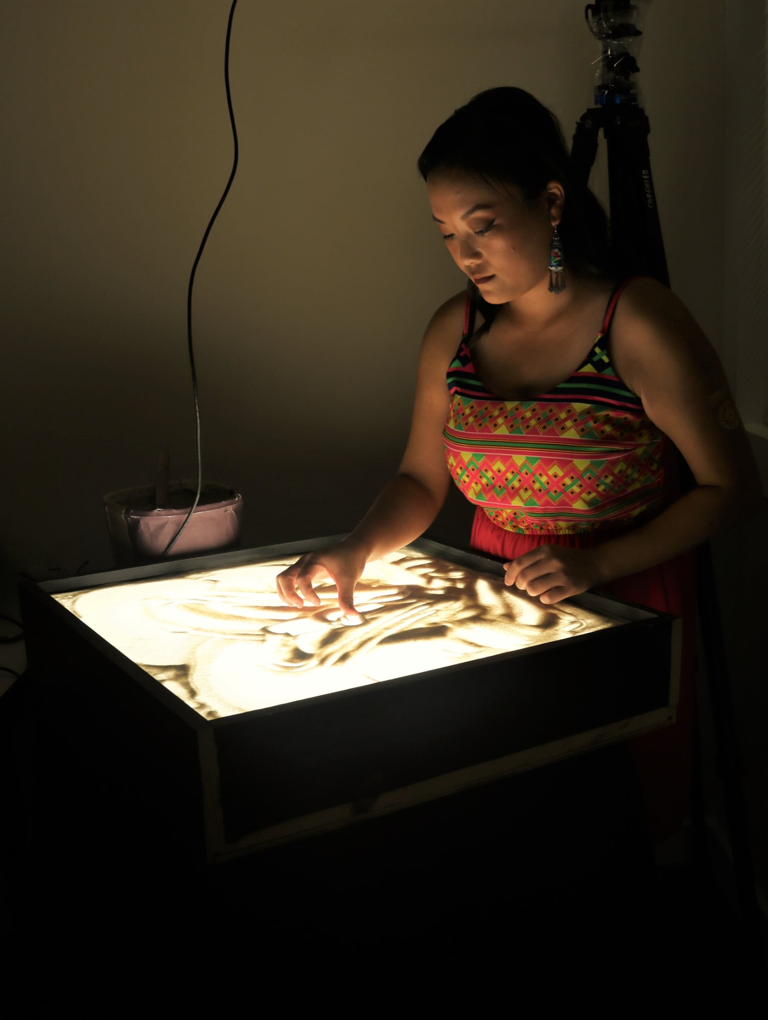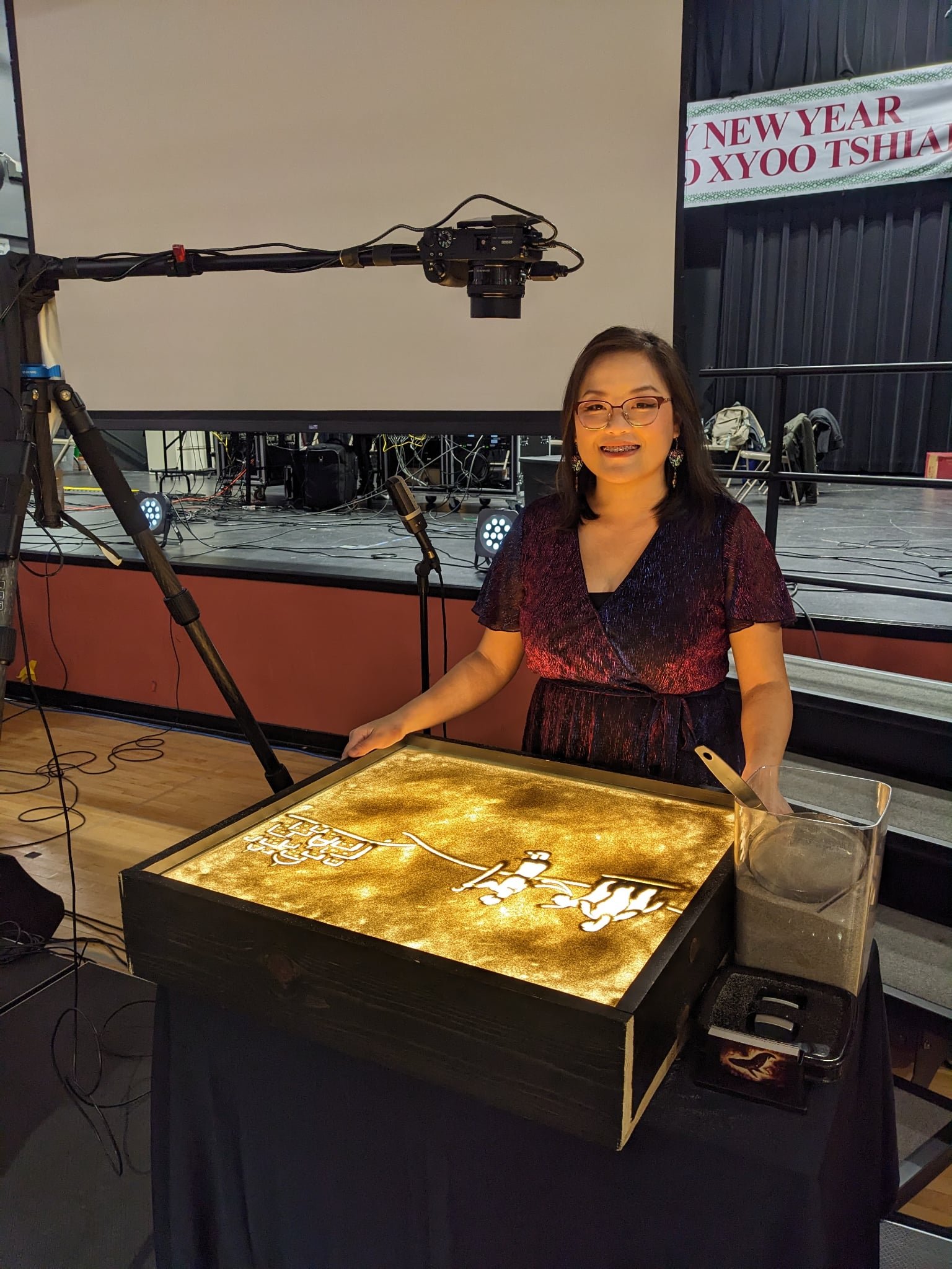 I don’t just perform; I breathe life into sand, transforming mere grains into stunning, meaningful stories that resonate deep within the audience. With my hands, fingers, and a few simple tools, I sculpt intricate details and patterns, each movement a brushstroke in a jaw-dropping, unforgettable performance. I have the privilege of collaborating with non-profits, organizations, businesses, and events, crafting each show to perfectly align with their vision and leave a lasting impact.