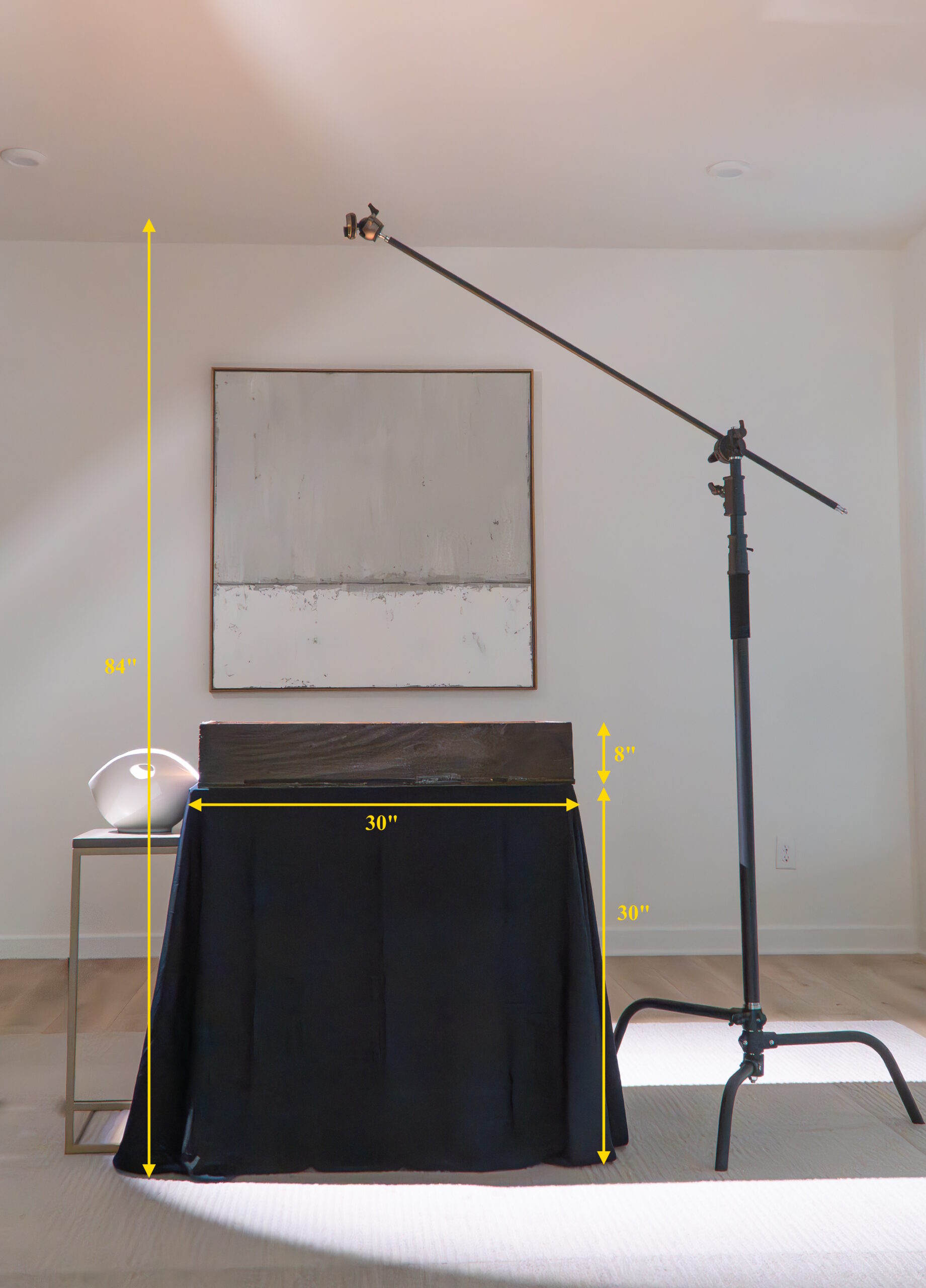 I provide my own camera (Sony Alpha a6400), tripod, tripod arm, sand box and sand.